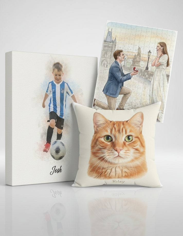 - Available on premium canvas, mugs, pillows, blankets, and puzzles